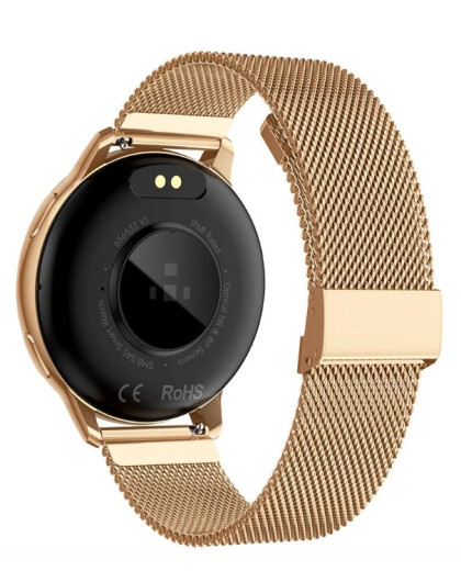 Montre connectée Tekday mixte, boîte acier gris ronde de 44mm, bracelet milanais doré rose.