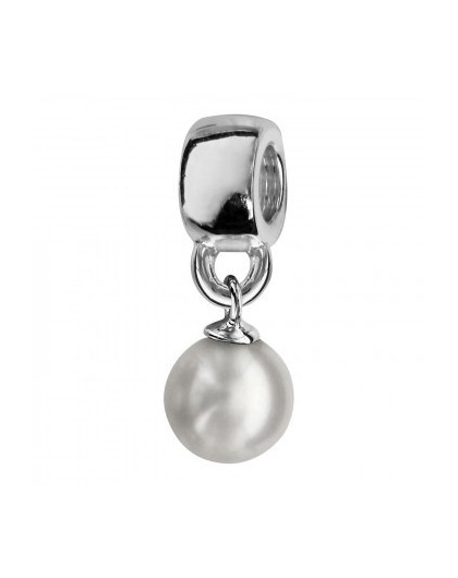 Charms Coulissant Argent Rhodi Suspendu Perle Blanche Synthtique 8mm
