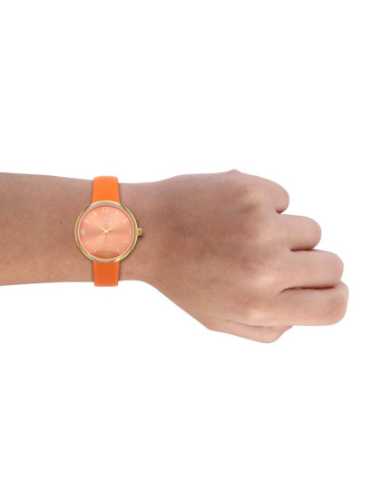 Go Girl Montre Femme Acier Doré Cuir Orange 699612