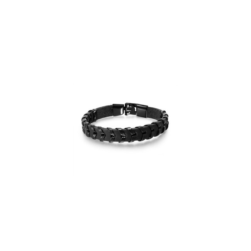 LeeCooper LCB01116-661 Bijoux homme - Bracelet simple rang avec lanière de cuir noir et tresse