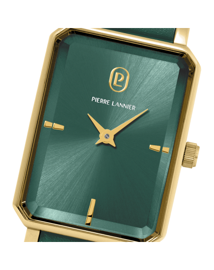 Pierre Lannier Ariane Montre Femme Acier Doré Cuir Vert 006L577