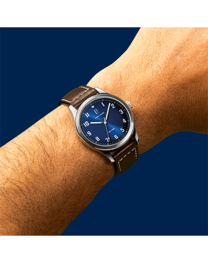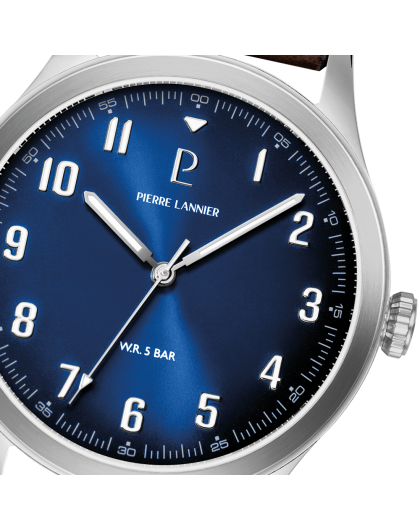 Pierre Lannier Aviateur Montre Homme Acier Cuir Marron 260G164