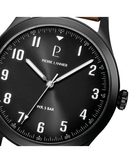Pierre Lannier Aviateur Montre Homme Acier Noir Cuir Marron 261K434